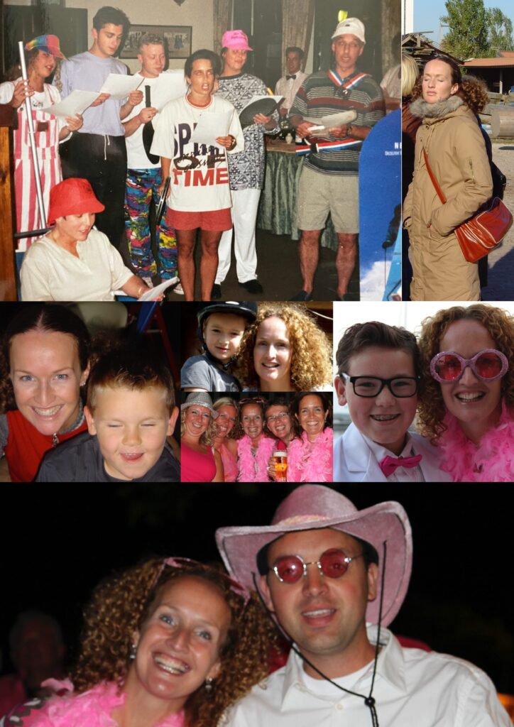 Ik kende je als het vriendinnetje van Jurre toen je de vliegtickets van Ernst&Young bij me kwam boeken op het zakenreisbureau waar ik werkte. Nadat ik bij de gemeente Purmerend ging werken, tipte ik je over de vacature bij het secretariaat en werden we collega’s. Als snel sloot je aan bij “team Kerstfeest” en hebben we de geweldigste personeelsfeesten georganiseerd. Jij regelde de afspraken en samen met de anderen gingen we los. Eerst “vergaderen” over het thema. De meeste thema’s haalden het niet, want wat moest je aan als het thema “onderwater” of “nudistencamping” was, maar wat hebben we gelachen. Als we het na een paar sessies eens waren, regelde jij dat we naar de decorverhuurder konden. Onderweg in de auto lagen we alweer gevouwen van het lachen over hoe we het gingen optuigen, maar vooral over de verhalen en roddels van de vorige editie. Een week of 2 voor het uiteindelijke feest gingen we de hele club naar de kledingverhuur. Ook daar weer hilarische momenten over idiote outfits, veel te hoge hakken, jurken waar je alleen maar mooi in kon staan en het optuigen van Harm, die zich echt alles liet aantrekken. Je droeg een paar keer zo’n geweldige avondjurk (je ging altijd eerst de grootste baljurk passen die ze hadden), er was het discopak dat jou “iets” beter stond dan mij, een andere keer koos je voor een oranje overall. Het allerbelangrijkste van de outfit was dat je er de hele avond in kon dansen. En dat deed je en ik probeerde je bij te houden.Aan het eind van die feesten konden we bijna niet meer lopen van de pijn in onze voeten. Maar wel genoeg om nog even een shoarma’tje te gaan eten met de jongens. Gingen we achterop de fiets nog half verkleed en geschminkt naar Babylon. Geweldig. En dan een half jaar later begonnen hele circus weer van vooraf aan.