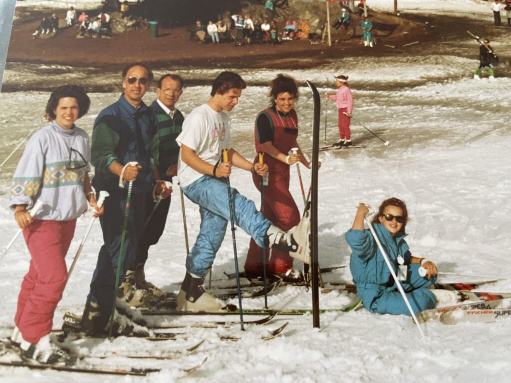 één daarvan is mijn eerste keer wintersport. Ik had meerdere keren geoefend in Nederland zodat ik de familie bij kon houden. Dat ging in het begin niet als gepland. Bij de eerste bocht die ik maakte stonden jullie allemaal te kijken of ik ging vallen.. en ja ik viel. Je moest erg hard lachen maar hielp me wel overeind. We hebben die vakantie samen veel vliegende herten gedronken en dat rare aprés-ski muziek geluisterd.