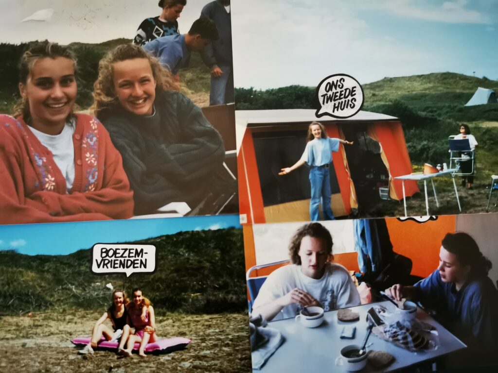 Onze 2e vakantie in 1992 was naar Texel. Dit was onze allereerste vakantie zonder ouders. We waren in de zevende hemel! Je ouders hebben ons gebracht en hebben ons geholpen met het opzetten van onze tent. Jeroen, Marco, Lex en nog een paar anderen kwamen die eerste dag ook 1 nachtje. De volgende dag gingen zij weer weg en toen sloot Diane bij ons aan. We hebben ontzettend veel lol gehad en ik heb een heel foto album vol met foto’s van deze vakantie