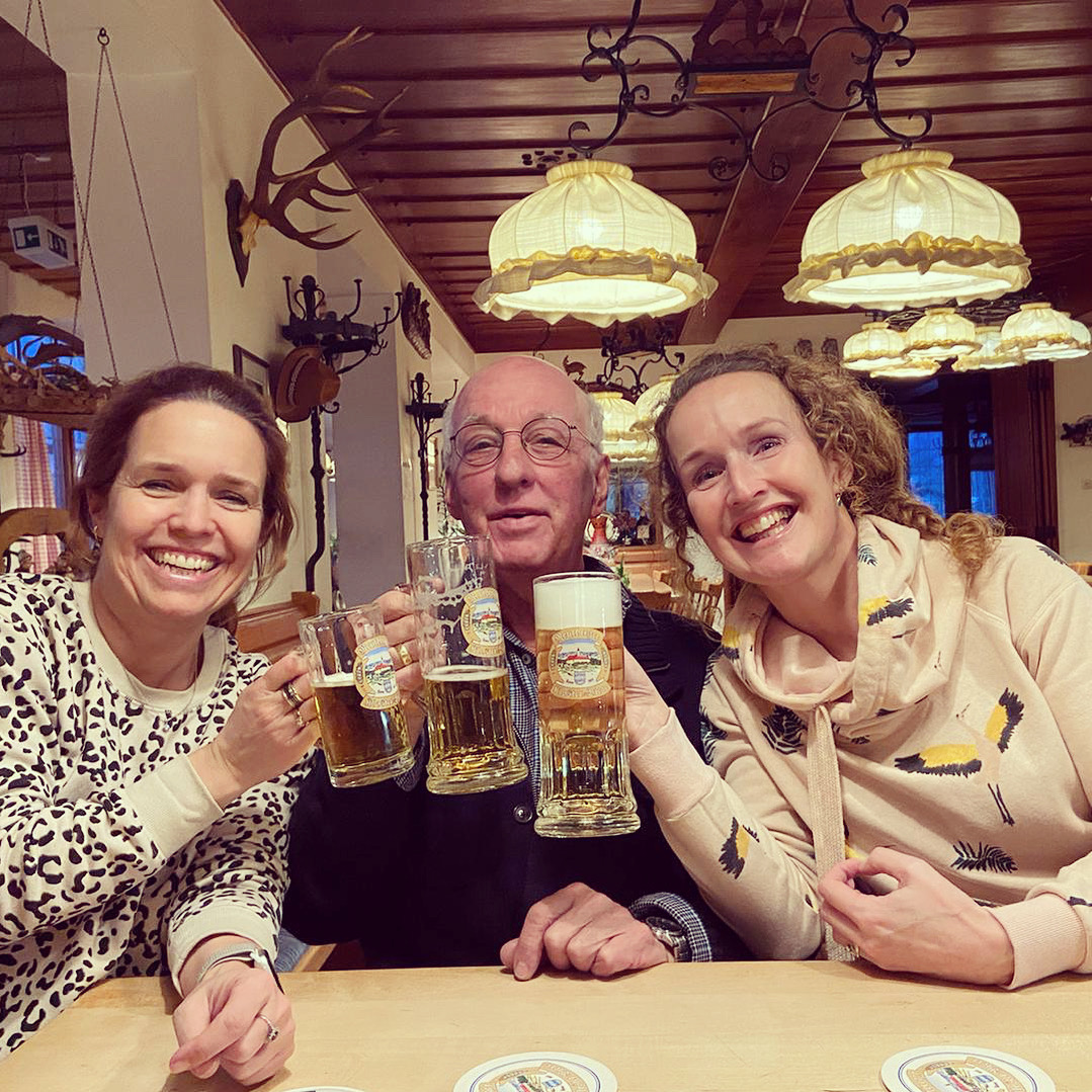 één daarvan is mijn eerste keer wintersport. Ik had meerdere keren geoefend in Nederland zodat ik de familie bij kon houden. Dat ging in het begin niet als gepland. Bij de eerste bocht die ik maakte stonden jullie allemaal te kijken of ik ging vallen.. en ja ik viel. Je moest erg hard lachen maar hielp me wel overeind. We hebben die vakantie samen veel vliegende herten gedronken en dat rare aprés-ski muziek geluisterd.