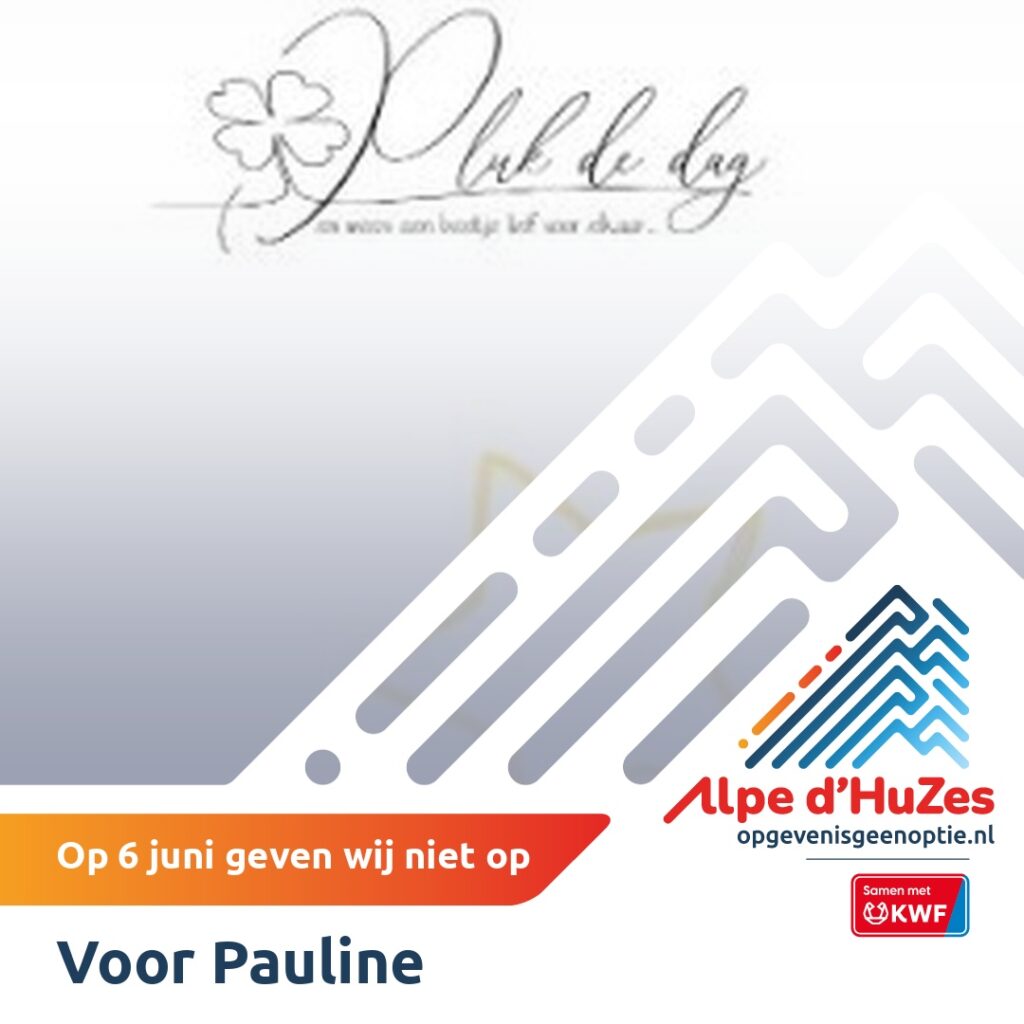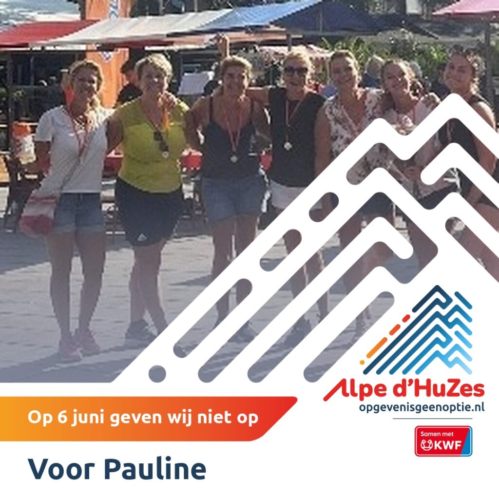 Op donderdag 6 juni 2024 doen 2 teams met familie en vrienden van Pauline mee aan de Alpe d’HuZes. De teams doen mee omdat ze geloven dat wij samen kunnen werken aan een wereld waarin je nooit meer doodgaat aan kanker.
